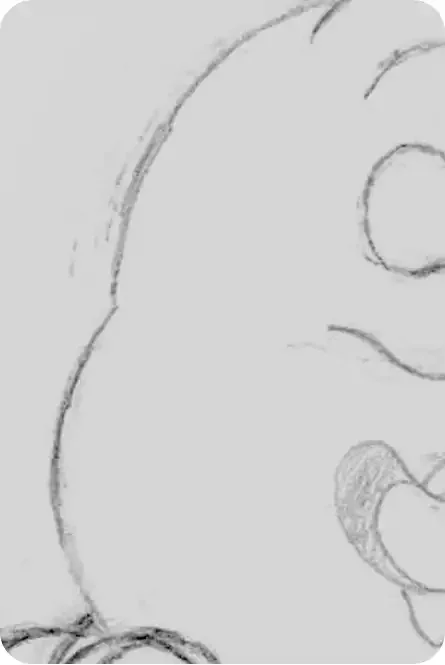 Pol le Chien®, gros plan crayonné.