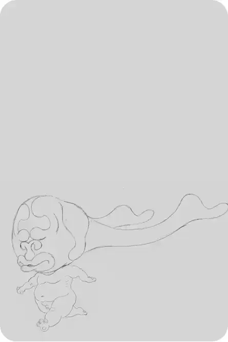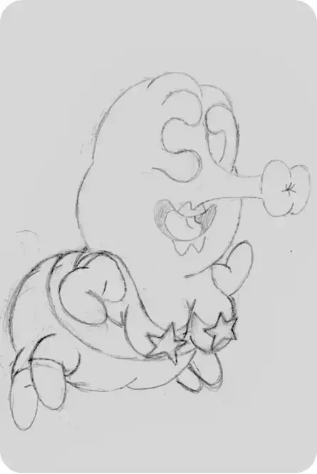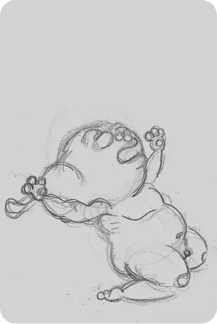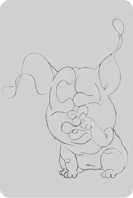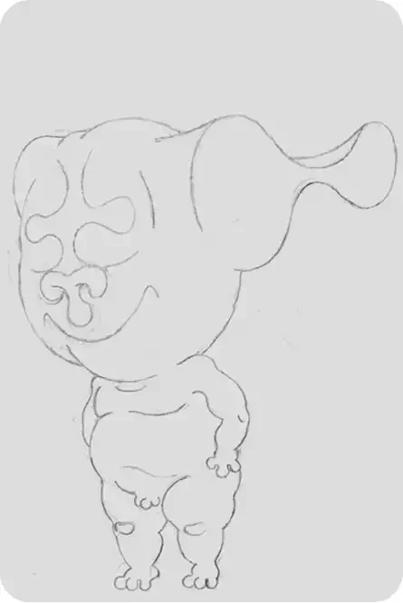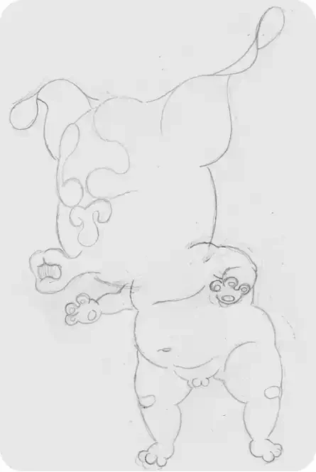 Pol le Chien® à la renverse, crayonné.