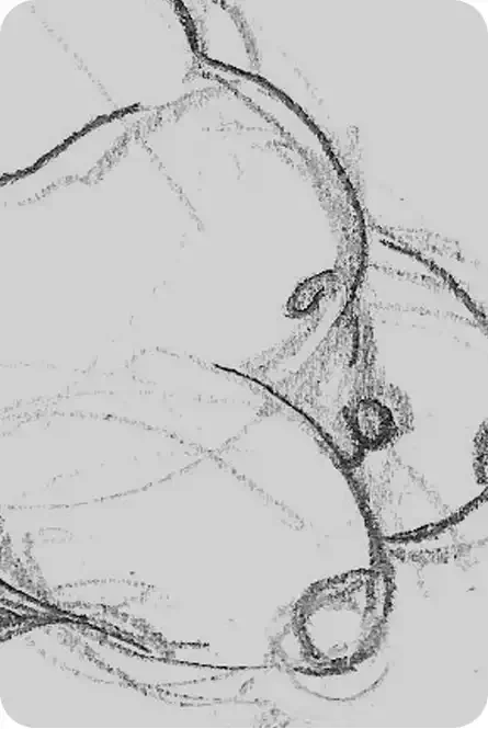 Création d'un croquis au crayon HB sur du papier à grain épais.